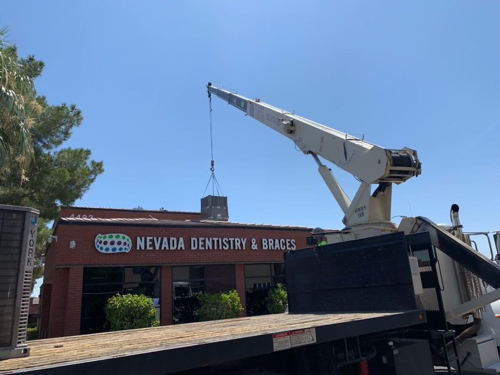 At AC Captain, we took on the exciting task of upgrading the HVAC system for Nevada Dentistry & Braces. This project involved lifting and installing a modern HVAC unit onto the rooftop of their office building. With the expertise of Desert Crane, we ensured a seamless transition from the old system to the new, more efficient unit.